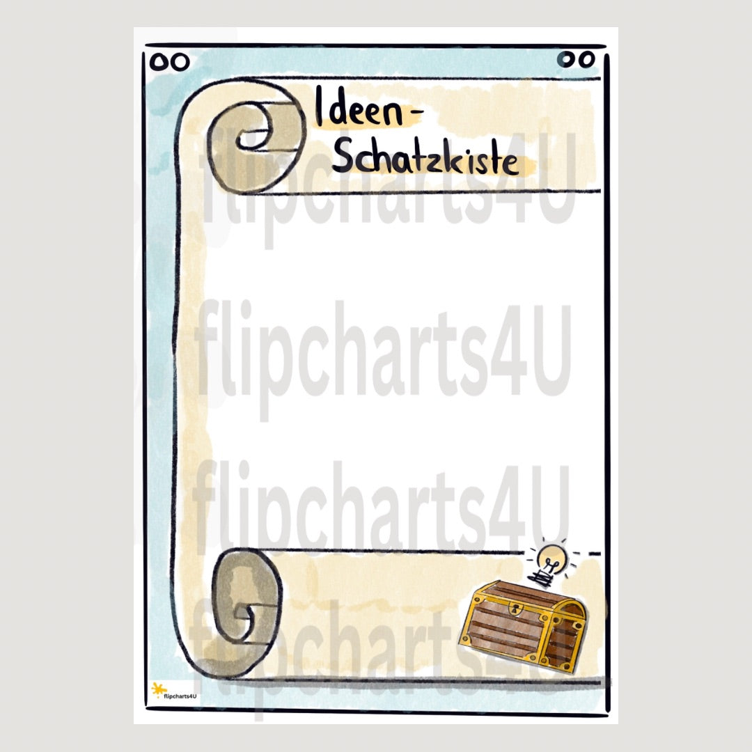Sammle kreative Einfälle und spontane Gedanken deiner Teilnehmenden an einem Ort – die Ideenschatzkiste ist dein visueller „Parkplatz“ für gute Ideen, die später weiterverfolgt werden.